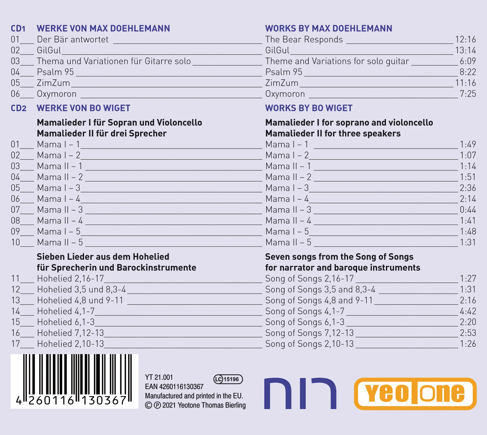 Mit ihrer Doppel-CD Ruach sind die beiden Komponisten Max Doehlemann und Bo Wiget großen Fragen auf der Spur. Das hebräische Wort Ruach (ּחור) taucht bereits in den ersten Sätzen der hebräischen Bibel auf. In der christlichen Tradition wird das Wort zumeist gelesen als „Geist“ (‚Der Geist Gottes schwebte über den Wassern‘). Der große jüdische Gelehrte und Rationalist des Mittelalters, Maimonides, widmet in seinem arabischsprachigen Werk „Führer der Verirrten“ ein ganzes Kapitel der Wortbedeutung von Ruach – er legt darin scharfsinnig dar, dass es sich dabei mehr um eine physikalische Realität handelt, um bewegte Luft oder schlicht Wind. Im Wort schwingt also je nach Lesart vieles mit: Religiöse Urthemen klingen an und gleichzeitig auch der Keim der Brechung und Säkularisierung. Rätsel und Mysterien, Elemente religiöser Überlieferung aus uralten Zeiten werden sowohl aus jüdischer Perspektive als auch humanistischer oder agnostischer Sicht – nicht immer frei von Ironie – betrachtet. Ob Spiritist oder Spötter: Viele dürften hier auf ihre Kosten kommen.