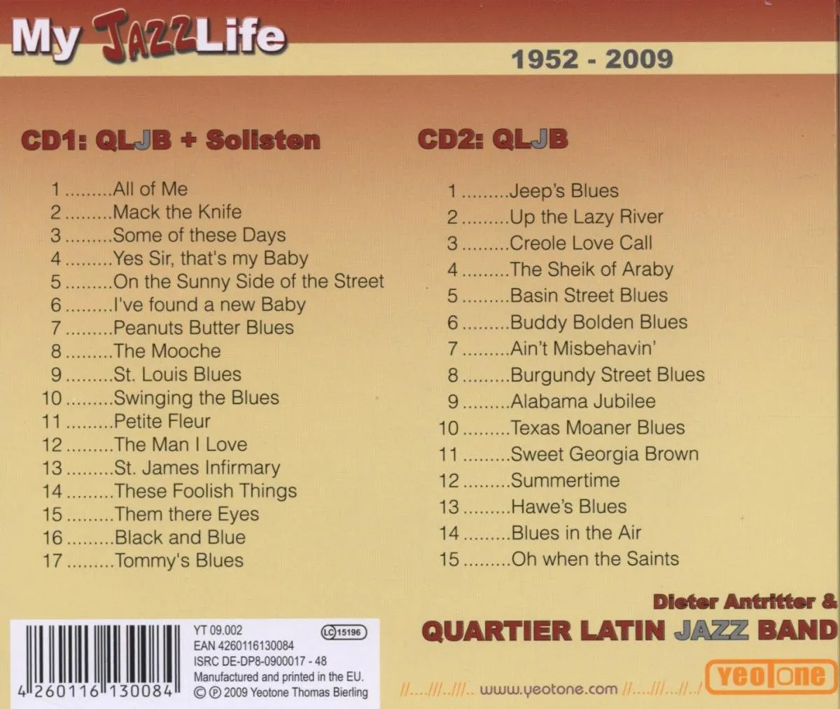 „Der Stil der QLJB war immer swingender Oldtime-Jazz. Bekannt wurden wir als Begleit-Orchester internationaler Stars bereits Ende der 50er Jahre mit Solisten, die in Europa auf der Durchreise waren oder hier ihren Wohnsitz nahmen. Mit den meisten haben wir auch Schallplatten eingespielt in einer Gesamtauflage von über einer Viertelmillion. Einen Querschnitt davon finden Sie auf der ersten CD, die zweite CD zeigt die QLJB „pur“.