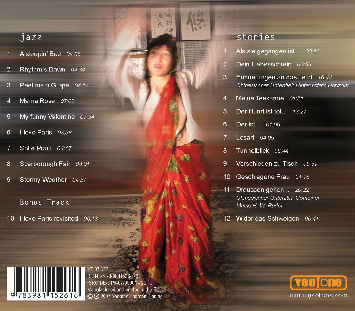 Auf der zweiten CD von „shrine – jazz my stories“ zeigt sich die Sängerin als einfühlsame Autorin und Sprachskeptikerin. Es findet sich hier ein Zyklus von Gedichten und Erzählungen, die erkunden, ob sich Individualität mit dem vermehrten Anpassungsdruck der Gesellschaft vereinen läßt. Zwölfmal streben die beschriebenen Charaktere einen Lösungsweg an, dessen spektrale Gangbarkeit erst durch mehrdimensionale Denkansätze erschlossen werden kann.